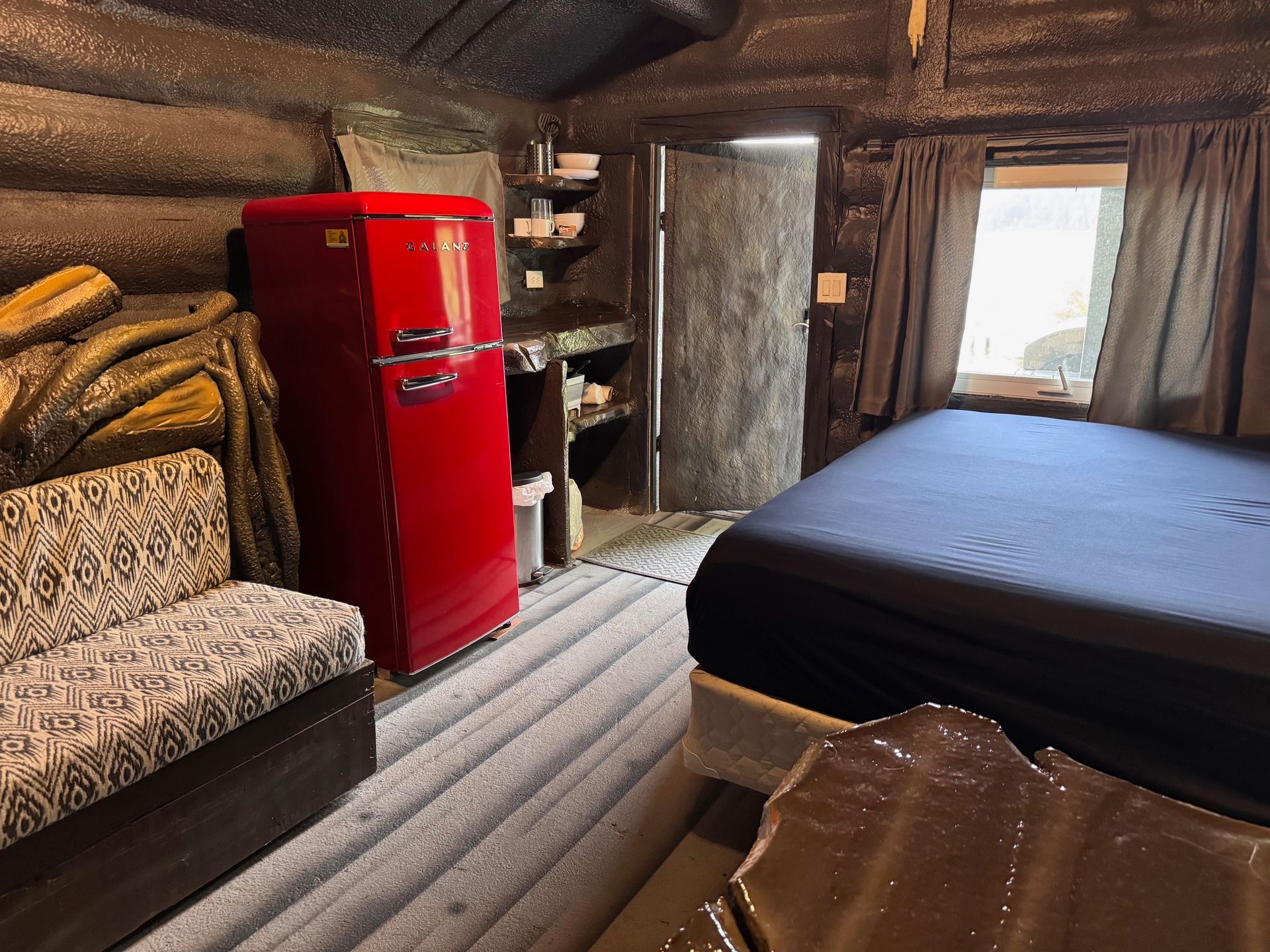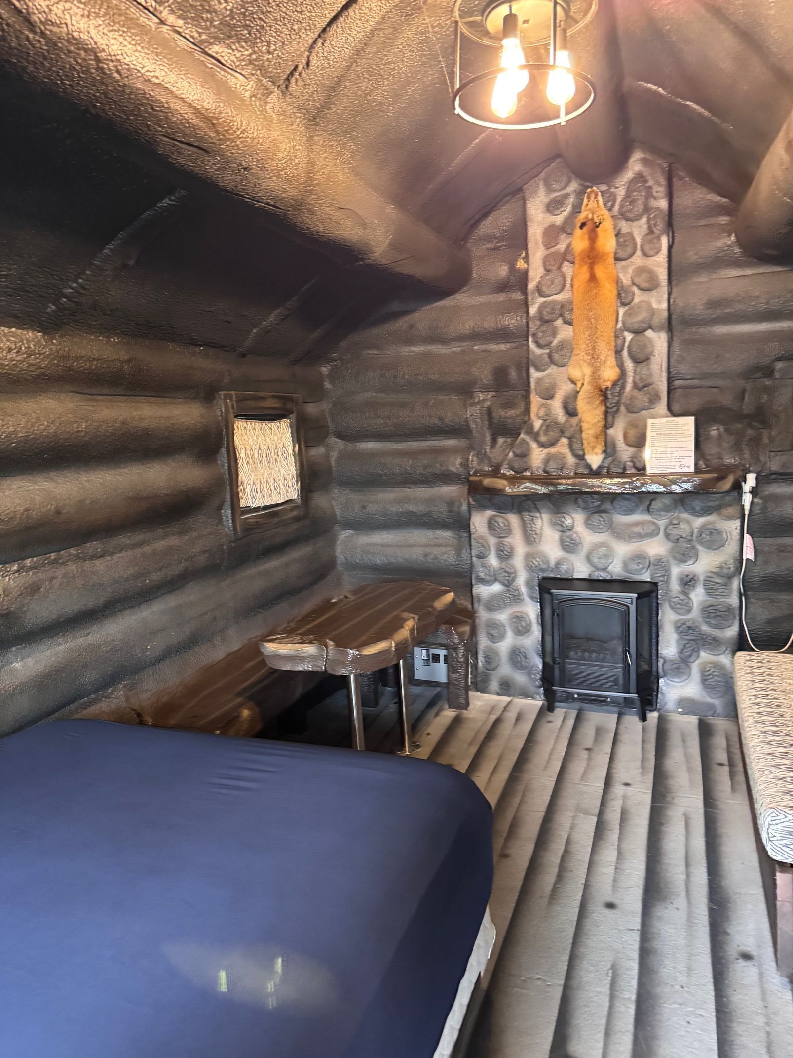The Trappers Cabin themed stay has the feel of staying in a 1900's Cabin but with some modern comforts of today. This unique stay offers a queen bed, mini fridge, fireplace, A/C, BBQ and fire pit and is located on a beautiful lakefront lot. Sleeps 2 (Bring your own bedding, towels)